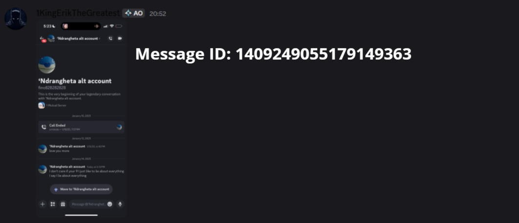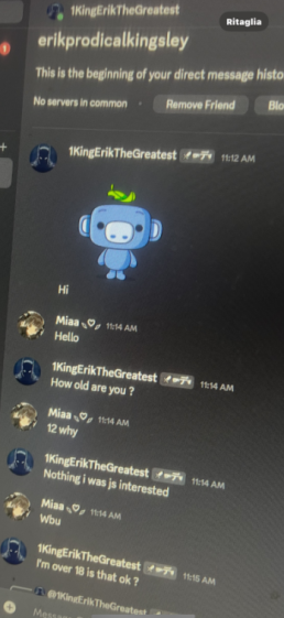 The text has been automatically translated from the Italian version | This individual called "1KingErikTheGreatest" has for some time now been spreading false information about certain people and defaming them. Practically all he does is show screenshots he calls "evidence"—fake ones—in which he shows a chat that is obviously not mine and was created by a person, whom I will probably talk about elsewhere, called "Jace", to impersonate me and make me look like a p*dophile.